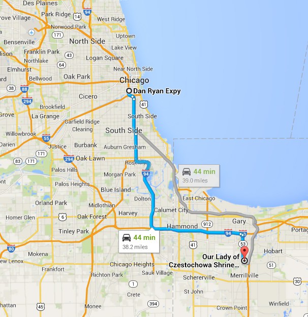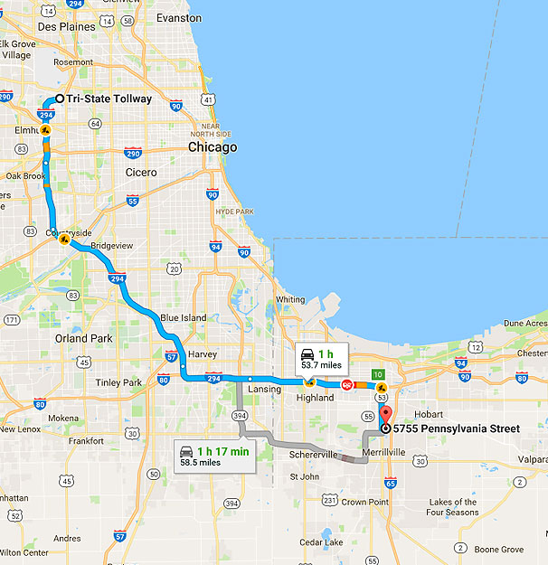 nie musisz zjeżdżać na Broadway. Można dojechać wygodniej jadąc dalej na wschód do następnego zjazdu (Exit 11) skręcając w autostradę I-65 (South) kierunek Indianapolis