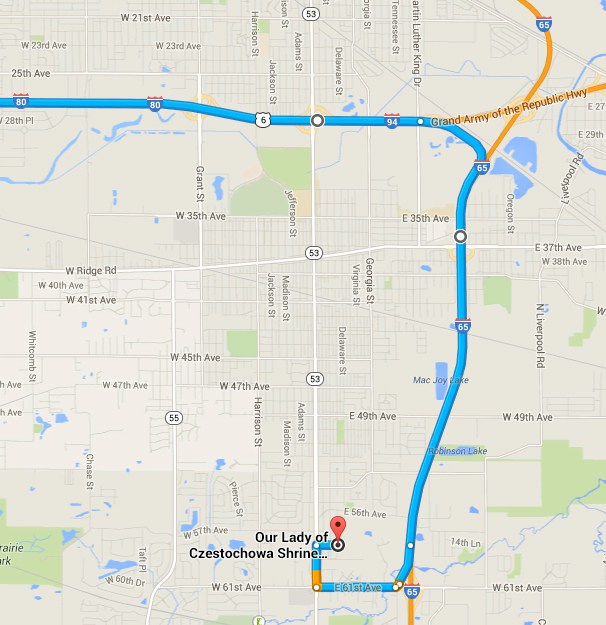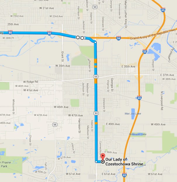 nie musisz zjeżdżać na Broadway. Można dojechać wygodniej jadąc dalej na wschód do następnego zjazdu (Exit 11) skręcając w autostradę I-65 (South) kierunek Indianapolis.