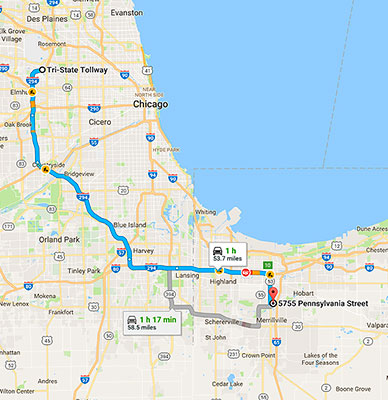 nie musisz zjeżdżać na Broadway. Można dojechać wygodniej jadąc dalej na wschód do następnego zjazdu (Exit 11) skręcając w autostradę I-65 (South) kierunek Indianapolis